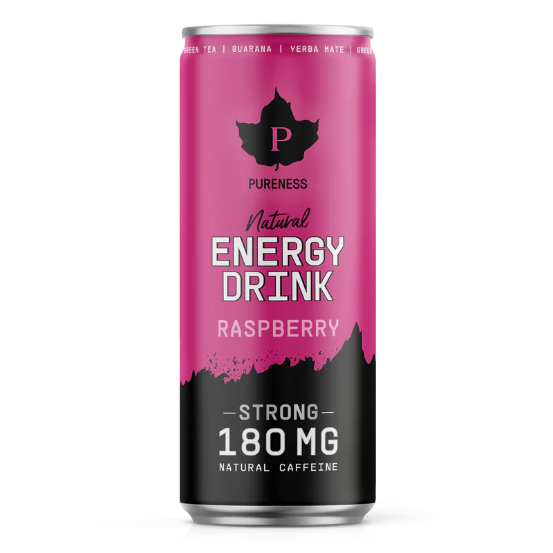 Pureness Natural Energy Drink är en sockerfri energidryck med naturligt koffein från grönt te, guarana och yerba mate. Perfekt för dig som behöver en energikick i vardagen! Smaken Raspberry ger en fräsch smak av somrig hallon. Varje burk innehåller 180 mg koffein och är tillverkad i Sverige. Skapad som svar på de onaturliga tillsatserna i traditionella energidrycker - denna version av energidryck undviker sukralos, aspartam och acesulfam K samt färgämnen, konstgjorda smaker och syntetiskt koffein. Storlek: 330 ml